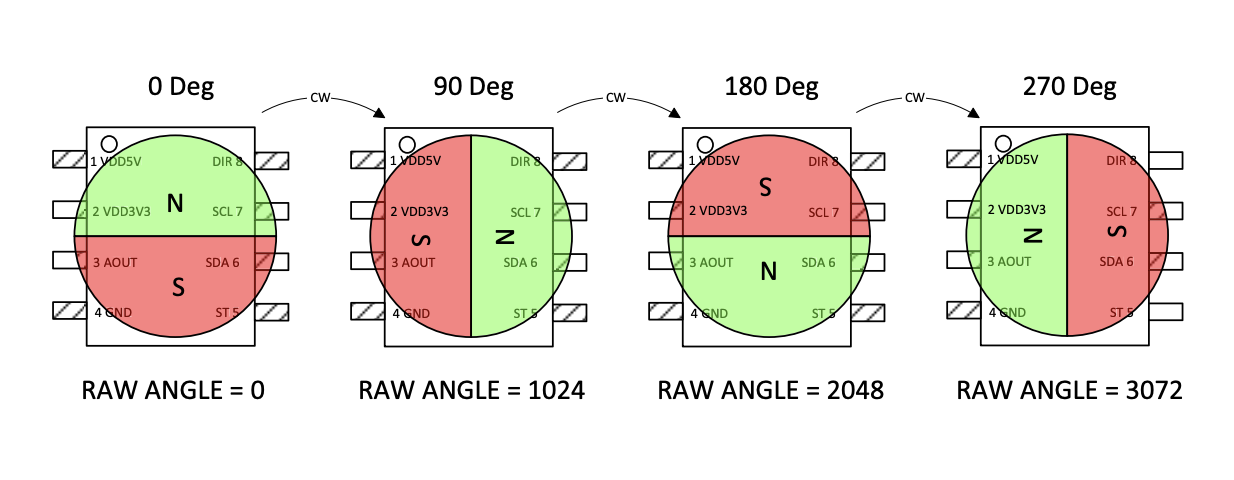 4095.If the magnet north was at the top of the chipe (i.e. 0 / 0deg raw position), the scaled position would be out of range (which also has it’s own caveats discussed below).