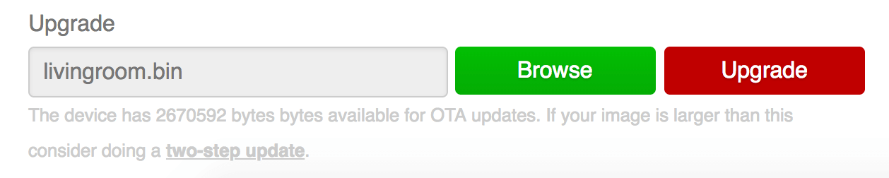 esphome compile livingroom.yaml(replacinglivingroom.yamlwith your configuration file of course) and navigate to the<NODE_NAME>/.pioenvs/<NODE_NAME>/folder. There you will find afirmware.binfile, this is the binary you will upload.