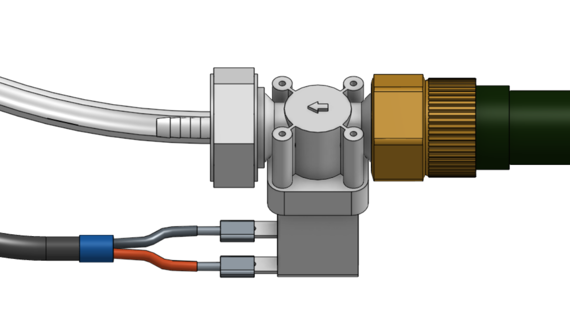 Note that the solenoid valve cable has blue heat shrink tubing around the ends to distinguish it from the vacuum pump cable and the RAMPS power cables.