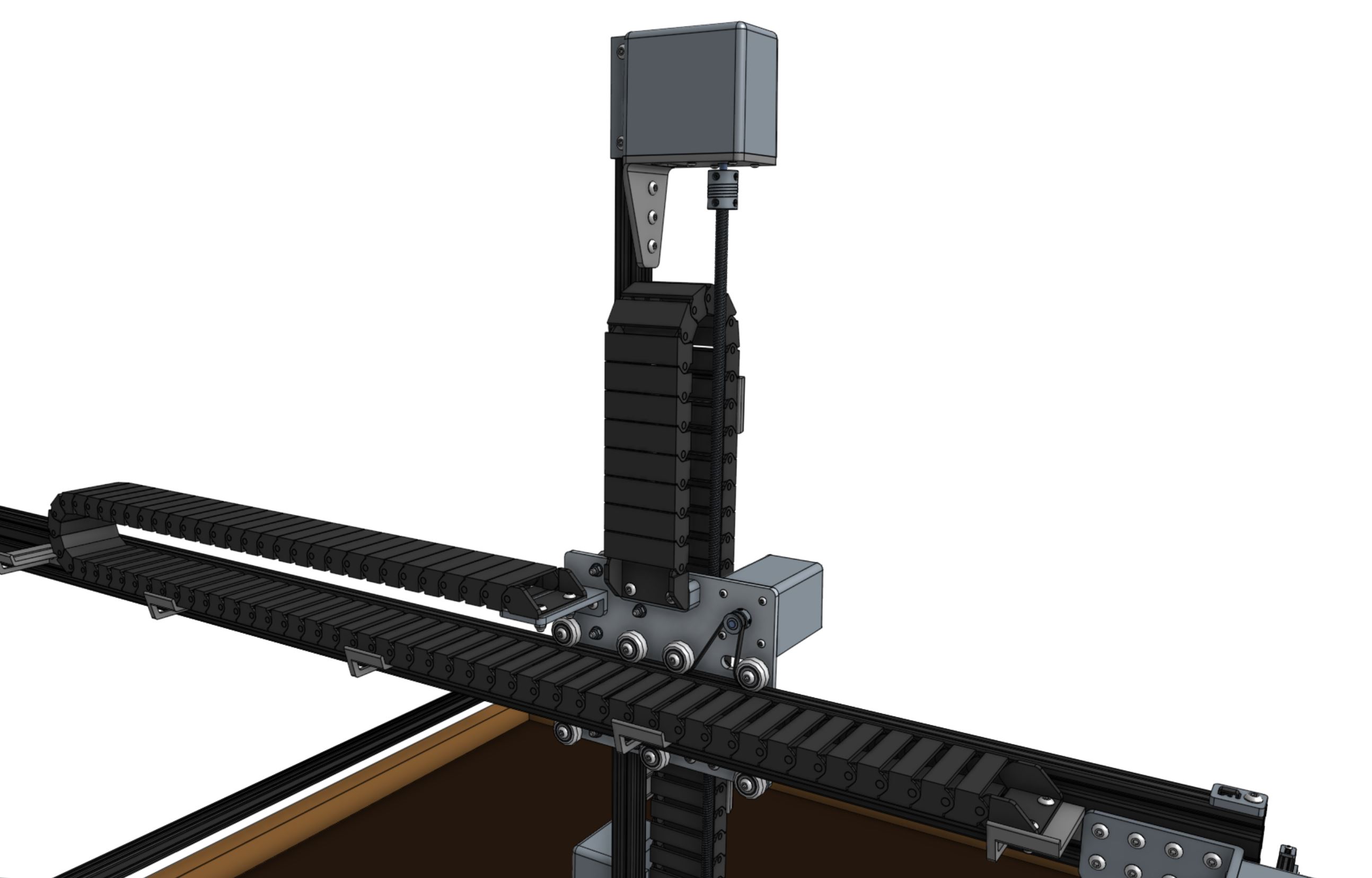 Not pictured: The cables and tube coming from the z-axis cable carrier.