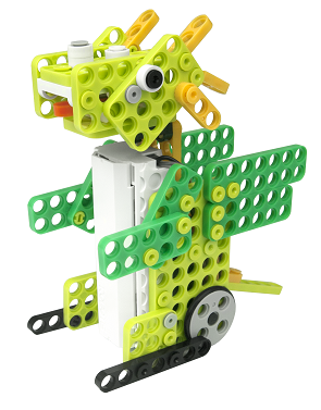ROBOTIS PLAY 300 DINOs is a friendly and colorful dinosaur-themed robotics kit featuring a motorized control box that allows your children’s creations to come to life and move!
