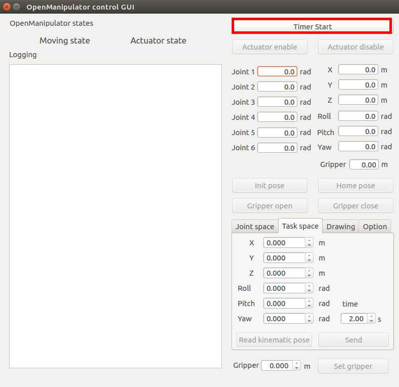 To controll OpenMANIPULATOR-P with RH-P12-RN (Gripper), click the Timer Start button.