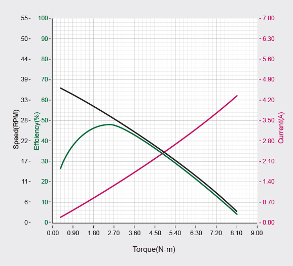 | Stall Torque | 9.2 [N.m] (at 11.1 [V], 4.5 [A]) 9.9 [N.m] (at 12.0 [V], 4.9 [A]) 11.7 [N.m] (at 14.8 [V], 5.9 [A]) |