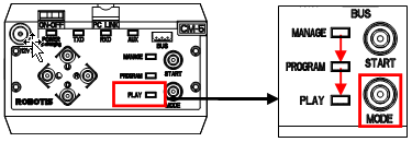 MODE 버튼을 눌러서 PLAY 에 LED 가 깜빡이도록 합니다. MODE 버튼을 누르면 LED 가 이동합니다.