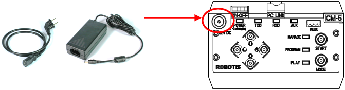 로봇을 SMPS 를 연결하지 않고 동작시키기 위해서는 배터리를 사용해야 합니다. 배터리가 방전되었을 경우에는 아래 순서에 따라 충전하여 사용하십시오.