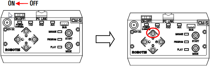 - CM-5를 다운로드케이블을 이용하여 PC와 연결합니다.