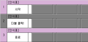제어기 전원 스위치를 켜면 모드 LED 가 깜빡이고 있는 대기 상태가 됩니다. 이 때 모드(MODE) 버튼을 눌러 모드 LED 가 PLAY 에 위치하도록 한 후 시작(START) 버튼을 누르면 다운로드 한 태스크 코드가 실행됩니다. 프로그램 출력용 모니터에 숫자 1 과 2 가 출력되는 것을 확인합니다.