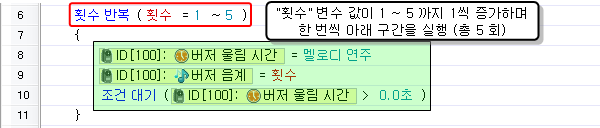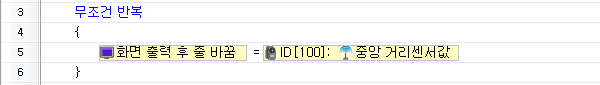 숫자를 반복하여 화면에 출력하기 위하여 무조건 반복 명령어를 사용합니다. (명령줄 만들기)