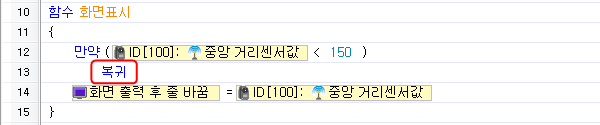 - 물체가 좌우에서 감지되면 ID[1] 관절을 움직여서 오리의 주둥이를 물체가 감지되는 방향으로 회전시킵니다.