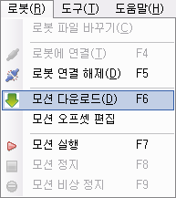 프로그램을 실행하기 전에 반드시 해당 로봇에 맞는 태스크 코드와 모션이 다운로드 되어야 합니다.