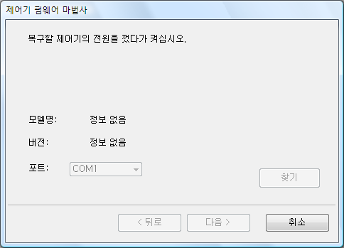 제어기 복구를 눌러서 펌웨어 마법사를 실행합니다.