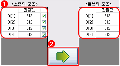 ID 목록 콤보박스를 클릭하면 현재 바꿀 수 있는 다이나믹셀의 ID를 볼 수 있습니다. 바꾸고자 하는 ID를 선택하고 적용 버튼을 누르십시오.