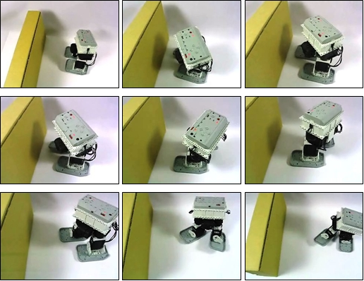 - 조립확인 태스크 코드 Download - 데모용 태스크 코드 Download - 데모용 모션 파일Download 동영상 - 다이나믹셀 설정값: AX-12+ ID[1], ID[2], ID[3], ID[4] : 관절모드 AX-S1 ID[100] - 동작방법 : 보행 경로 상에 장애물을 설치해 놓고 보행 드로이드를 작동시킵니다. 스스로 장애물을 인식하고 피해가면서 두 발로 보행을 합니다. |