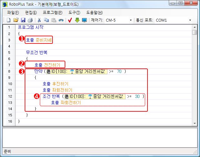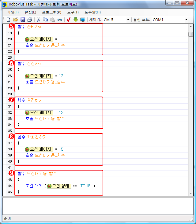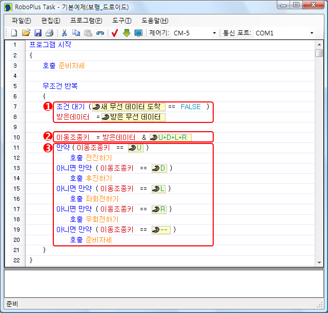 따라서, CM-5를 기반으로 만든 로봇도 로보플러스로 프로그래밍하여 제어할 수 있습니다.