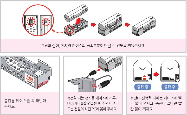 반드시 USB 케이블 커넥가 삽입된 충전용 케이스에 끼워서 충전해 주세요. 처음 사용 시 리튬이온전지를 꼭 충전해 주세요.