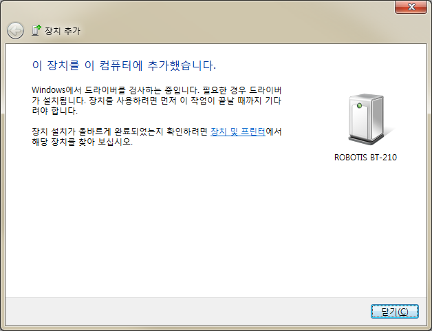 제어기의 전원 스위치를 켰을 때 블루투스(BT-210)의 LED가 깜박이면 로봇과 블루투스가 정상적으로 연결된 것입니다.