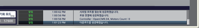 작성한 태스크 코드를 STEAMCUP MINI에 다운로드합니다. 다운로드를 하게 되면 제어기 내부에 태스크 코드를 저장하므로 한 번만 수행하면 됩니다.