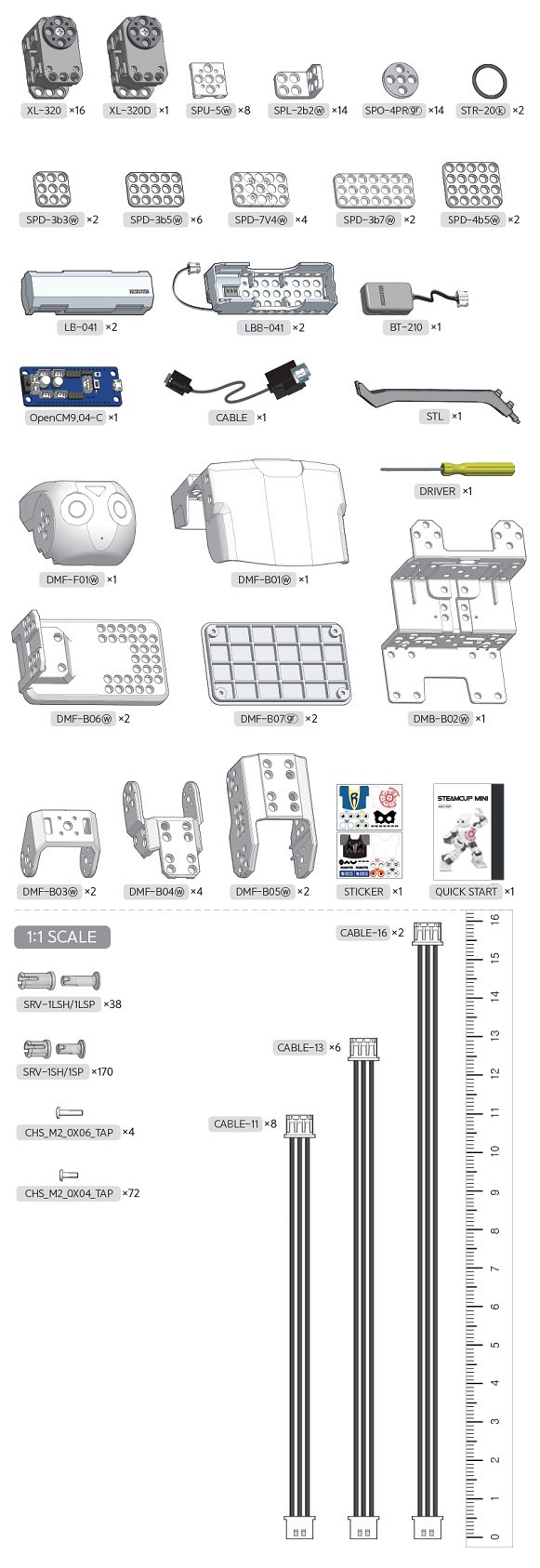 STEAMCUP MINI의 제어기인 OpenCM9.04-C Type은 5핀 다목적 포트를 통해 다음과 같은 장치들을 추가 장착할 수 있습니다.
