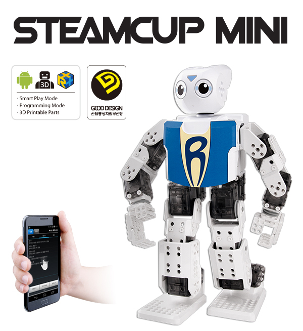 주의 : 관절의 정확한 위치를 확인하기 위해서는 반드시 STEAMCUP MINI를 들고 확인하시기 바랍니다. 바닥에 세워 둔 채로 확인할 경우 로봇 자체의 무게로 인해 다리나 허리 관절의 위치가 틀려질 수 있습니다.