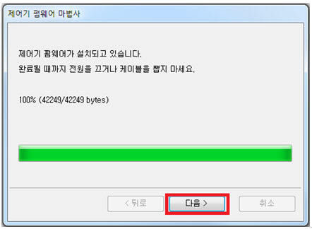 12. 제어기를 찾으면 [다음]버튼을 클릭합니다.