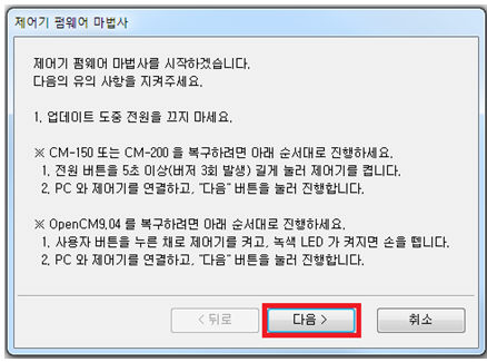 STEAMCUP MINI의 제어기(OpenCM9.04C) 펌웨어를 복구하거나 업데이트 하려면 아래 순서대로 진행하시면 됩니다.