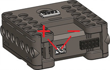 - 전원 포트의 간단한 회로 구성은 다음과 같습니다. +부분에 전지의 +극을, -부분에 전지의 -극을 연결하면 됩니다.