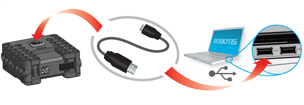 - RoboPlus Task (1.1.0.0 이상 버전) 또는 RoboPlus Task 2.0를 통해 제어용 태스크 코드를 작성하여 각 부품들의 동작을 제어할 수 있습니다.
