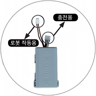 배터리에는 충전용 커넥터와 로봇 작동용 커넥터가 연결되어 있습니다.