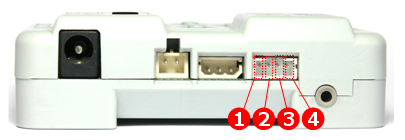 - 로보티즈 5핀 포트 : DMS, 접촉 센서, 적외선 센서 등의 주변장치를 연결하기 위한 포트입니다. 각 포트의 포트 번호는 I , II , III, IIII , IIIII , IIIIII 과 같이 막대 숫자로 표시되어 있습니다.
