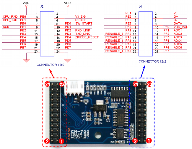 CM-700 에는 레귤레이터가 없기 때문에 자체 제작 SUB 보드에서 CM-700 으로 공급되는 전원은 반드시 5V 여야 합니다.