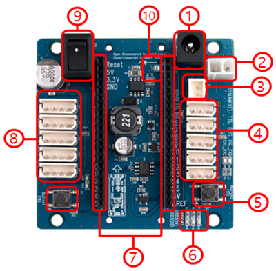 - Power Switch : 보드와 다이나믹셀 전원을 on/off하는 스위치 입니다. 단, USB 연결시 보드 전원은 on/off되지 않습니다.