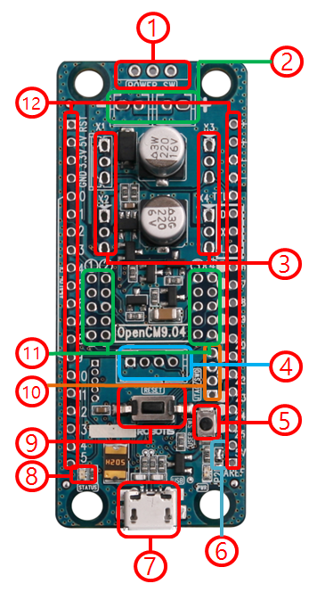 참고: OpenCM 9.04에 설치된 펌웨어의 손상으로, 부트로더에 적절히 진입하지 못할수 있습니다. 문제가 발생했을 경우, 사용자 버튼을 참고하세요.