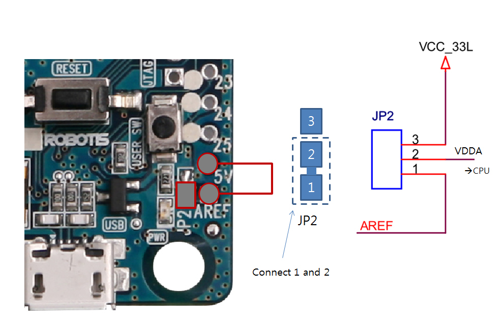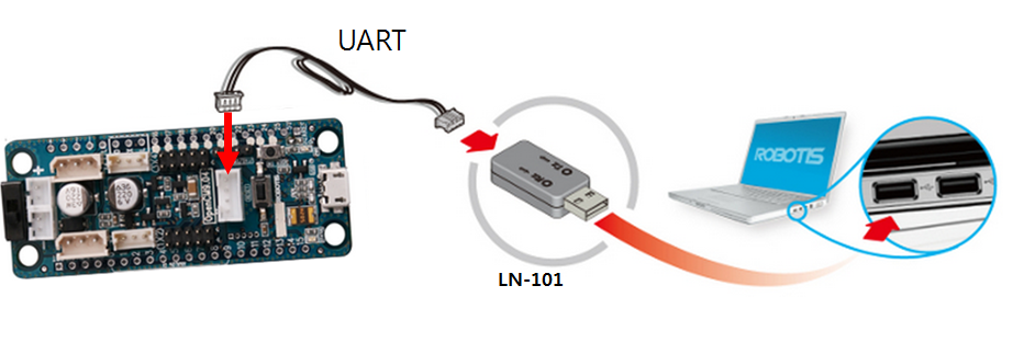- USB전원으로는 다이나믹셀을 구동할 수 없습니다. 별도의 전원을 공급해주세요.