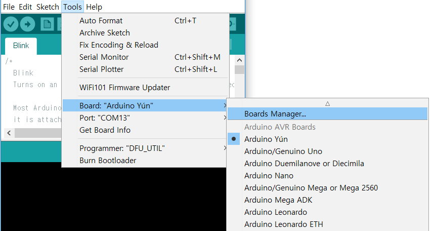 여기에서는 프로그램을 업로드하기 위한 포트 설정을 합니다.
