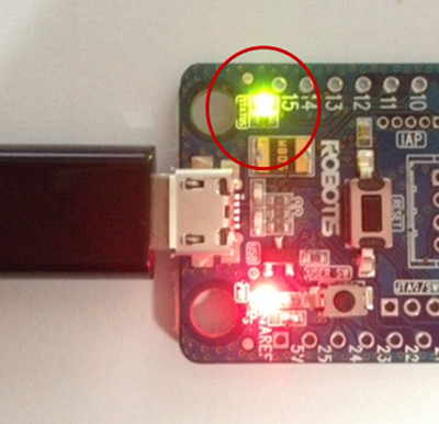 아래와 같이 복구모드로 진입하게 되면, 녹색 LED가 켜집니다. 프로그램이나 펌웨어의 다운로드가 완료되면 제어기가 리셋되며 녹색 LED가 꺼집니다.