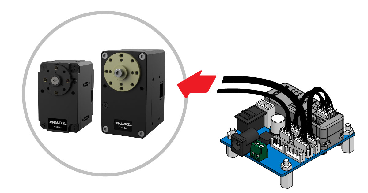다이나믹셀에 연결한다 (다이나믹셀 모델에 따라 변환케이블이 필요할 수 있음).