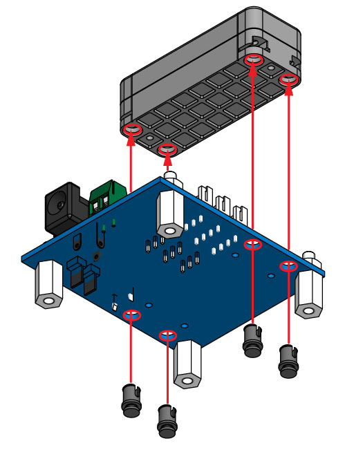 U2D2 파워 허브 보드의 각 모퉁이에 조립한다.