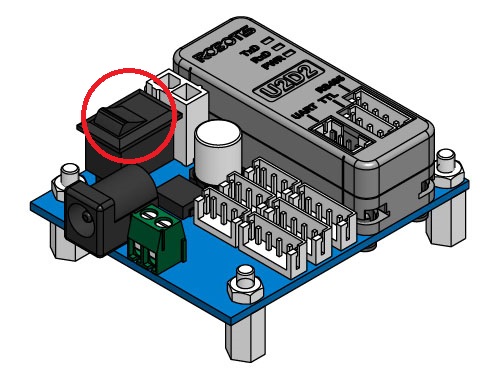 U2D2 파워 허브 보드의 전원 스위치를 켠다.