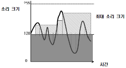 따라서 128보다 낮은 쪽으로의 소리크기는 사실상 무시되며, 더 큰 소리가 날수록 그때의 소리 크기가 누적되어 저장된다고 보면 됩니다. 아래 그림을 보면 이해하기 쉬울 것입니다.