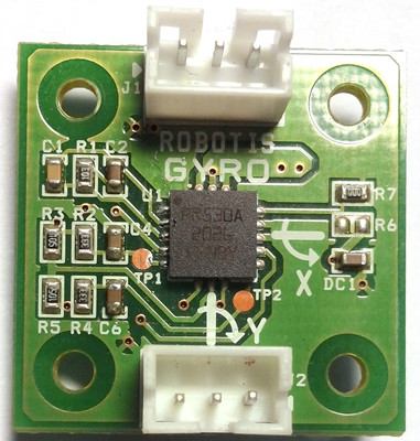 - 각속도가 0일 때(가만히 있을 때) 출력값은 약250 입니다. 어느 한 축으로 급격히 회전하였을 때, 최대 455, 최소 45의 값이 출력되며, 300°/s의 각속도를 나타냅니다. 이 때 부호는 방향을 나타냅니다.