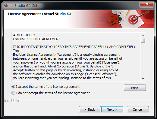 Atmel Studio의 설치 과정은 다음과 같습니다.