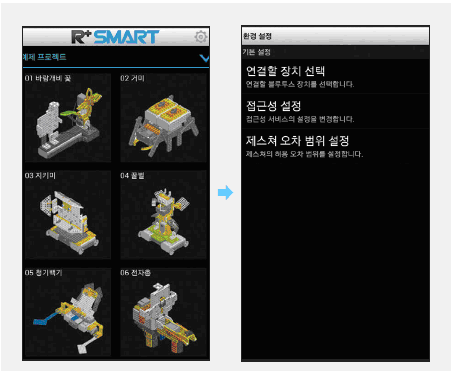 1. R+SMART 앱을 실행한 후 우측 상단에 환경설정을 선택합니다.