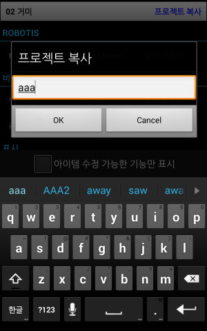 1. 프로젝트를 길게 누르고 있으면 표시되는 기능 확인 및 수정 가능한 화면에서 프로젝트 복사를 클릭합니다.