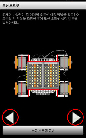 3. 모션을 사용하는 예제(스마트 4족로봇, 스마트 강아지, 변신 로봇, 스마트 드로이드)의 경우, 화살표를 클릭하면 각 관절의 위치를 다른 방향에서 확인 할 수 있습니다.