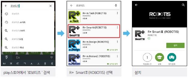 3. 구글 플레이에서 로보티즈 또는 R+ Smart로 검색해서 설치합니다.