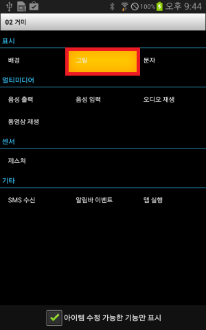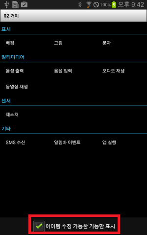 1. 화면 아래의 체크박스를 클릭하면 수정 가능한 기능들만 표시 됩니다.