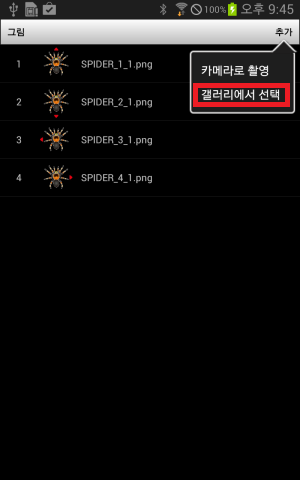3. 우측 상단의 “상단” 버튼을 클릭, “갤러리에서 선택”을 클릭합니다.