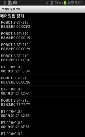 3. 연결할 장치: 블루투스 모듈에 적힌 주소를 검색된 리스트에 서 선택하면 제어기 연결시 선택한 장치로 연결을 시도합니다.