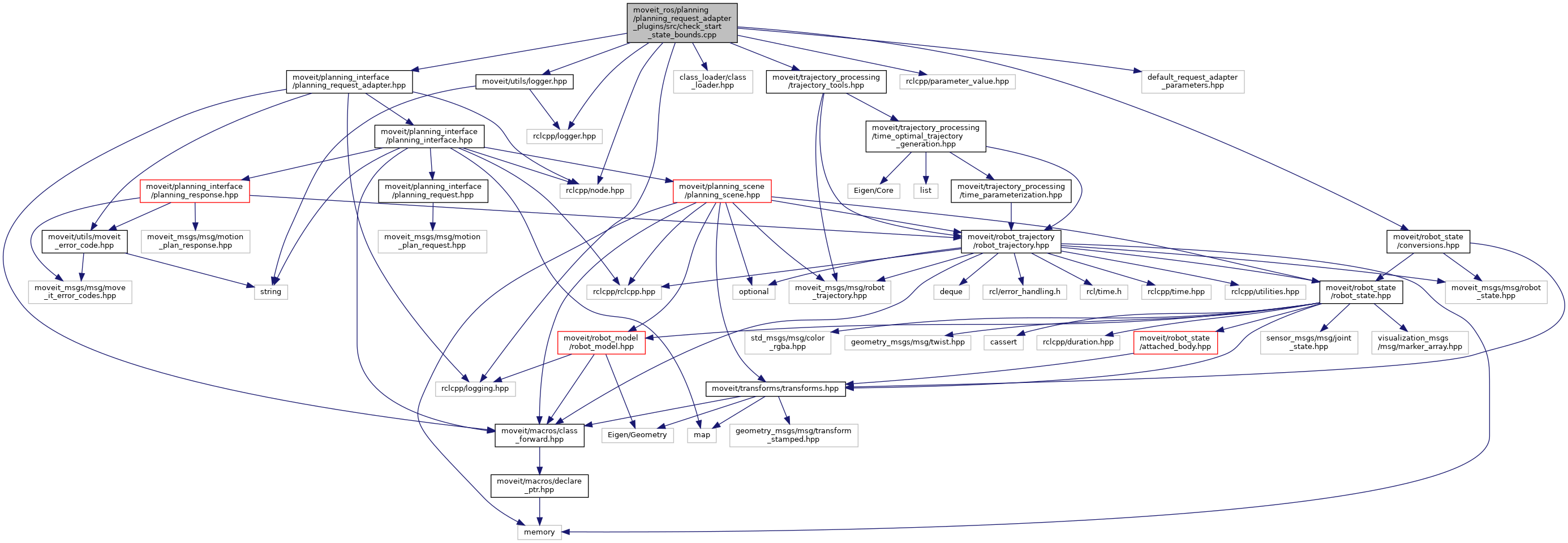 | The CheckStartStateBounds adapter validates if the start state is within the joint limits specified in the URDF. More... | |
