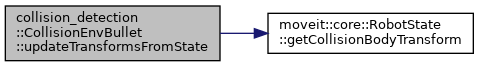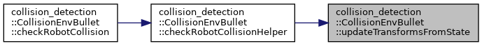 | void | updateTransformsFromState (const moveit::core::RobotState &state, const collision_detection_bullet::BulletDiscreteBVHManagerPtr &manager) const |